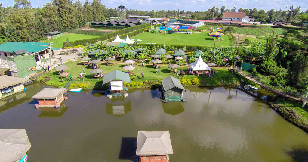 It’s a multi-experience venue with gardens, animal park, floating restaurant, kids’ activities, and hotel accommodations located in Karen, Nairobi.